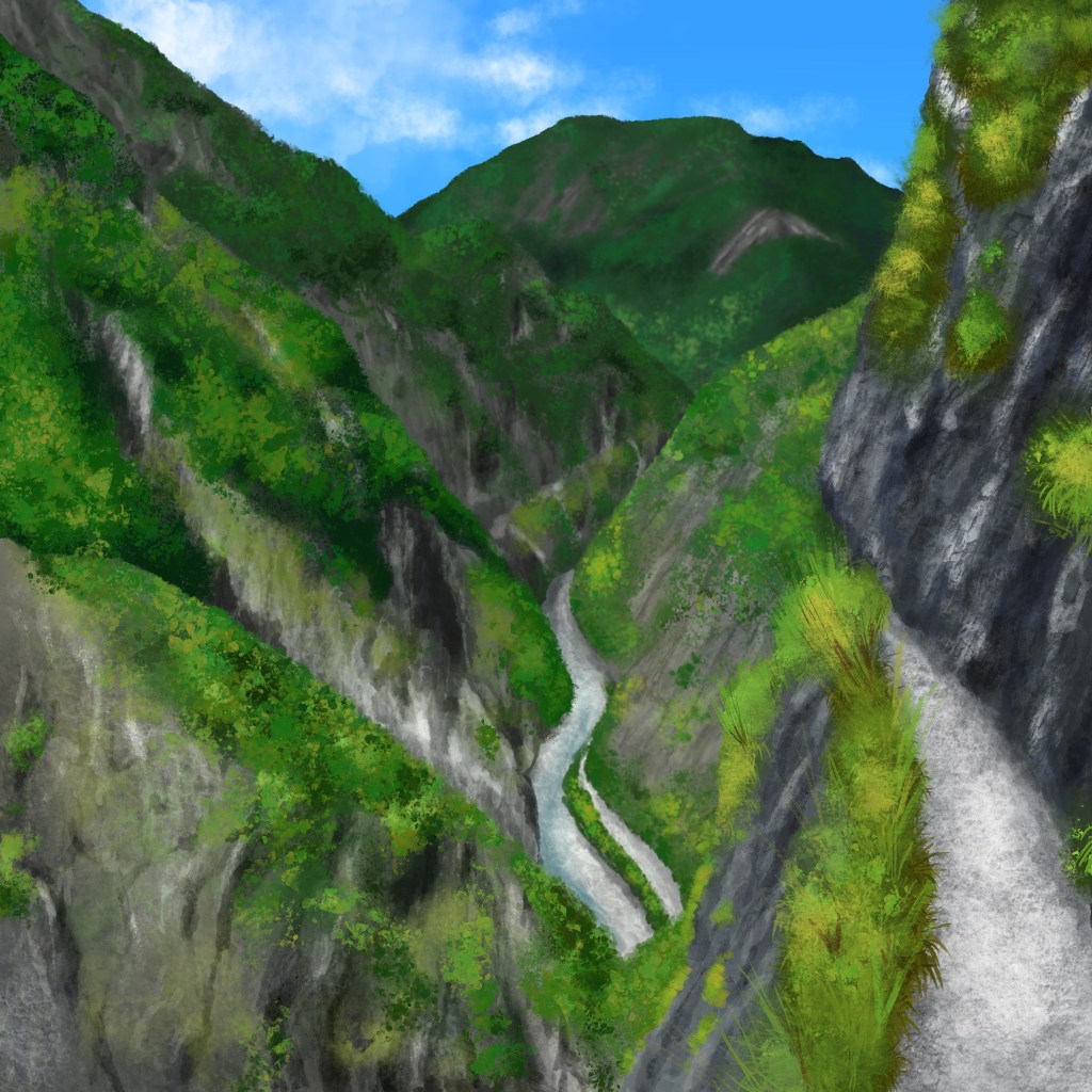 這次因為溯溪會碰水,又要騎車、走步道,不想背太重,所以沒有帶相機,只能用手機隨便拍,回來以後覺得太醜了,就決定參考照片重新畫一次,順便練習一下畫畫。