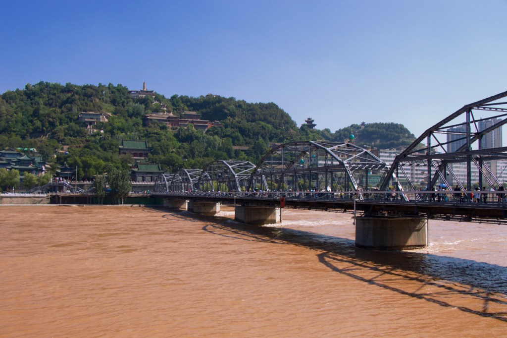 到了蘭州自然要去看黃河,一早前往著名景點黃河母親雕像、中山鐵橋,黃河母親雕像沒有很大,但黃河本身確實很壯觀,河水非常的黃,而且正值汛期,河面上漲淹沒了許多河邊的設施。走上中山橋,望著寬廣的黃河,遠處的河邊可以看到幾艘羊皮筏子,但也許是水太大太急,都沒有人在河面上划皮筏。過橋抵達白塔山,開始往上爬,認真爬很快就可以到達最上面。