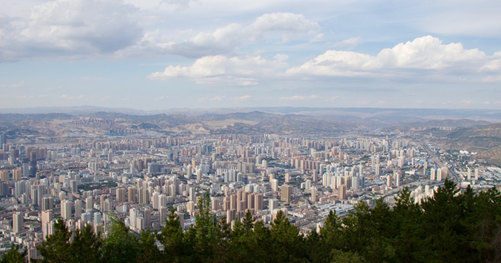 下午來到蘭州市區南方的五泉山公園,一路往上走,來到一個玻璃觀景台,可以遠眺蘭州市區。繼續走會到蘭山,爬上一大堆階梯,來到山頂的三台閣,後半的階梯都鋪得很好,還有屋頂可以遮陽,除了爬得有點累以外都很舒服。在三台閣可以看到很長一段的黃河以及蘭州市區,風景壯麗,白塔山相形失色。最後我們搭公車下山,話說其實上山也有纜車可以搭,可是我們很能走,而且要省錢。
