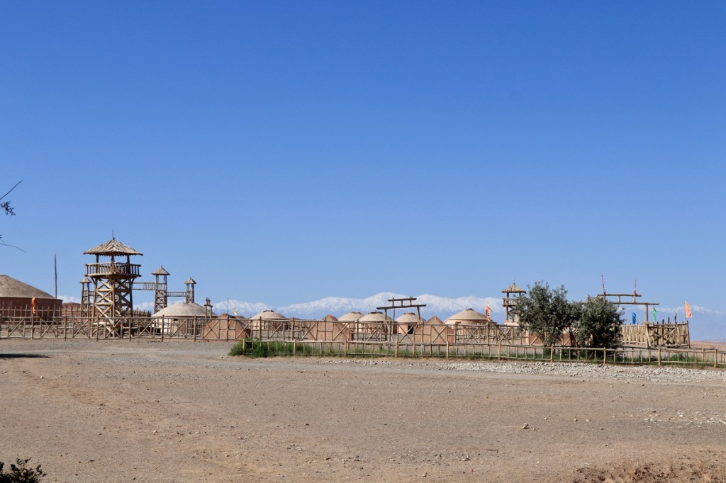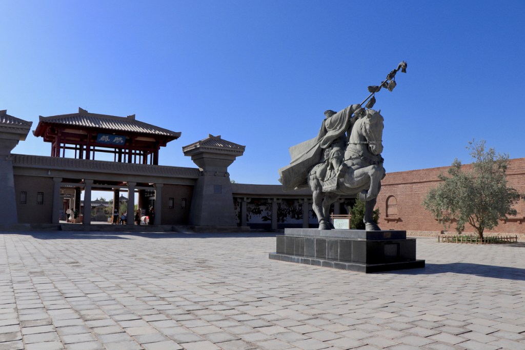 隔天我們報名了敦煌文旅集團的西線行程,他們廣告打很大,原來是跟政府有關的企業,一日的行程包括陽關、玉門關、雅丹地質公園,搭乘遊覽車移動,去陽關的路上可以看到沙漠和祁連雪山,一路在大漠中奔馳。抵達陽關景區,那裡屬於私人景區,有重建的城門和仿古兵營,還有一個展示館,裡面有一些絲路文物,一路上各個絲路展示館的文物其實都大同小異,也有一些是複製品。景區中視也非常好,搭乘遊園車前往一些烽火台的遺址,經過歲月消磨,烽火台只剩一塊隆起的土堆,但是仍可以想像古時,想到「西出陽關無故人」這些出塞的詩詞,親眼見到「塞外」黃沙滾滾,遠方高聳的祁連山脈山頂雪白,景色壯麗又可以懷古。