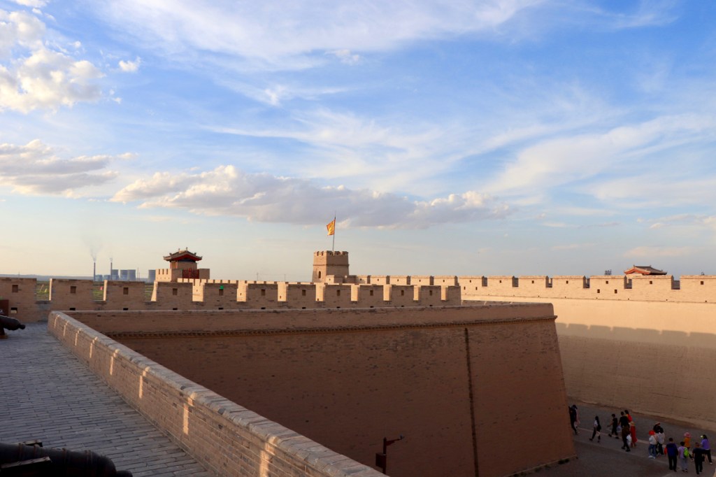 好不容易走到「天下第一雄關」嘉峪關,整個關城很大也非常完整,可以走上城牆,遠眺大漠和遠方的祁連山,也可以看到火車,城中有仿古的打鬥表演。景區可以待到日落,因為統一使用北京時間,甘肅日落的時間都超晚,站在關城上看日落,夕陽餘暉映照在祁連山頂,白雪反射出橘紅的光芒,一大群的燕子在關城中橫衝直撞。