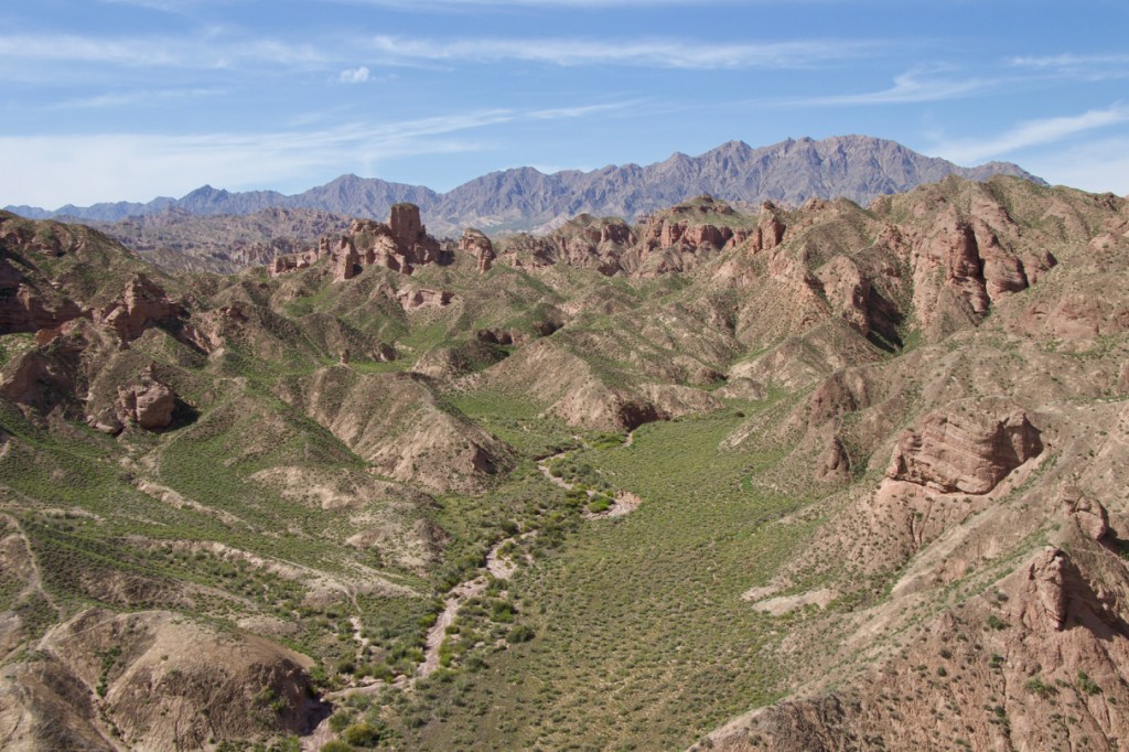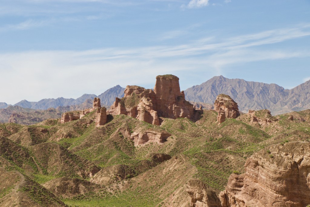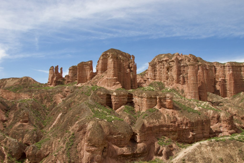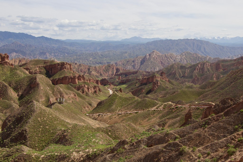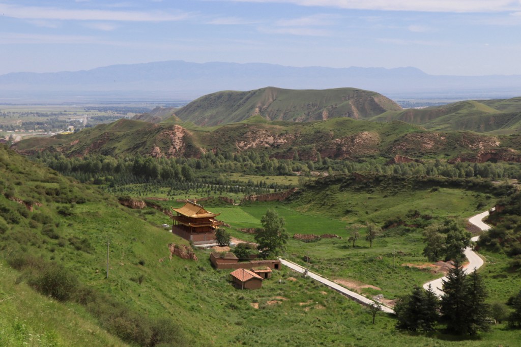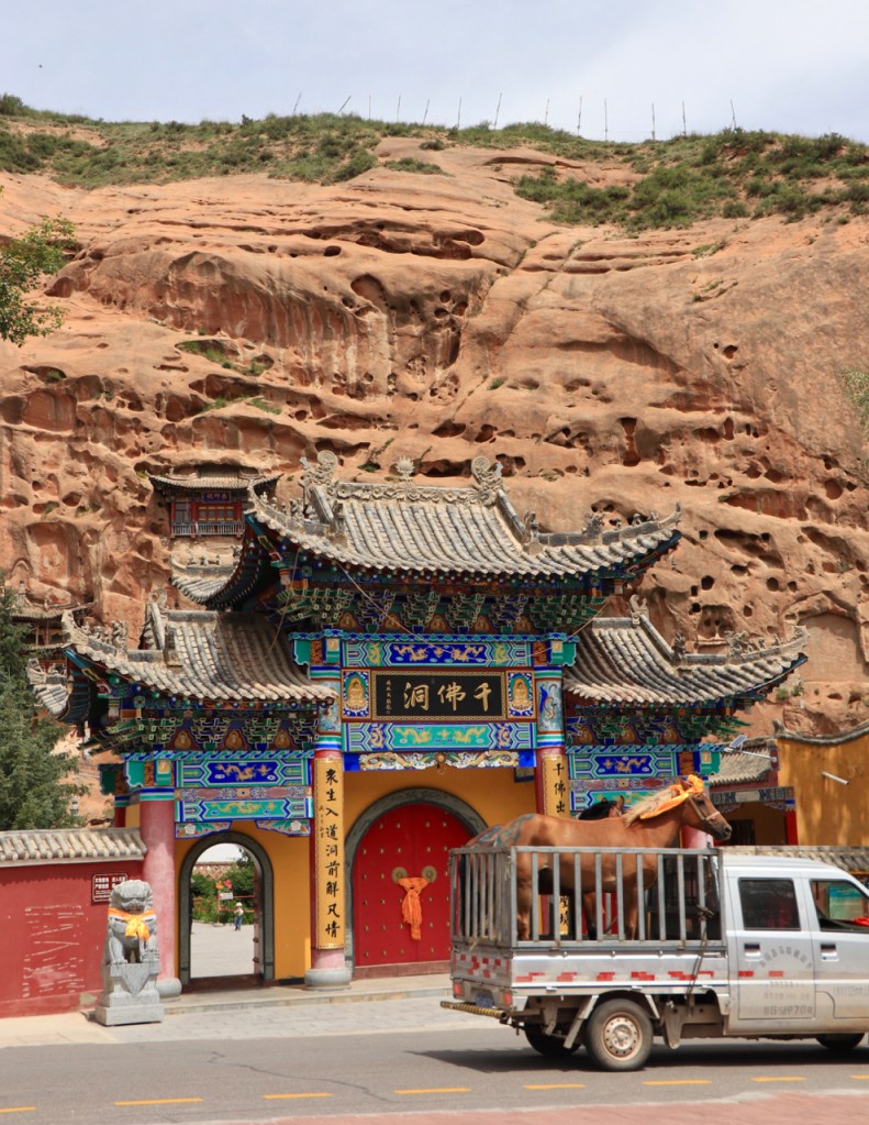 隔天我們包車前往馬蹄寺、冰溝丹霞、七彩丹霞,首先來到馬蹄寺,其位於張掖市南方,一路上向著山的方向前進,該地區目前居民多為藏族,信奉藏傳佛教。馬蹄寺最特別的就是三十三天石窟,那是一個在山壁裡面的洞窟,內部有階梯,爬上狹小的階梯可以到更上面,又有洞可以看到外面,裡面有佛像和壁畫,也有僧人點了許多酥油燈。除此之外,別的洞窟裡面也有許多塑像,但是部分的佛像在文革時期遭受破壞,有一個石像當時被從山上拖下來以後就因為太重,再也搬不回去了。馬蹄寺周遭的風景很好,離山很近,可以看到許多樹木,也有一條步道可以走,不知道能通到哪裡,但是因為停留的時間有限,所以我們沒有走完。附近有一條小溪,冷冽的溪水從祁連山流下。